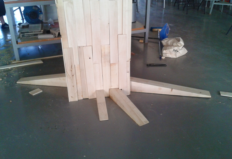 En el mes de agosto de 2012 se inició el proceso de construcción de la falla empezando por el tronco, estructura principal; después le siguieron ramas, raíces, personajes...